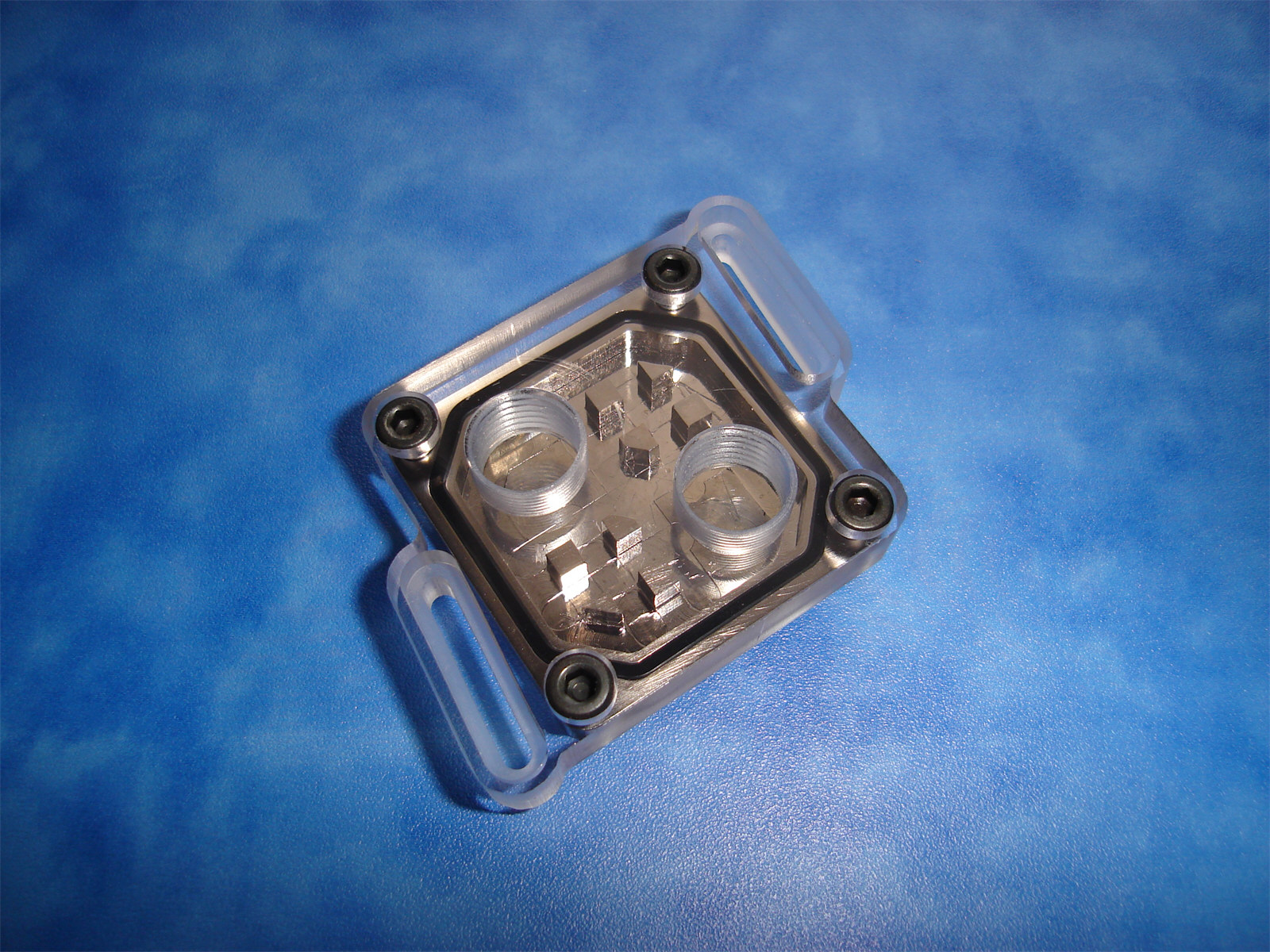 Rozměry základny bloku jsou 42x42x5mm. Pro TOP je použit polykarbonát tloušťky 9.5mm. Rozteč pro uchycení k základní desce je 49-65mm. Vstupní a výstupní otvor má klasický rozměr G1/4" s roztečí 23mm.